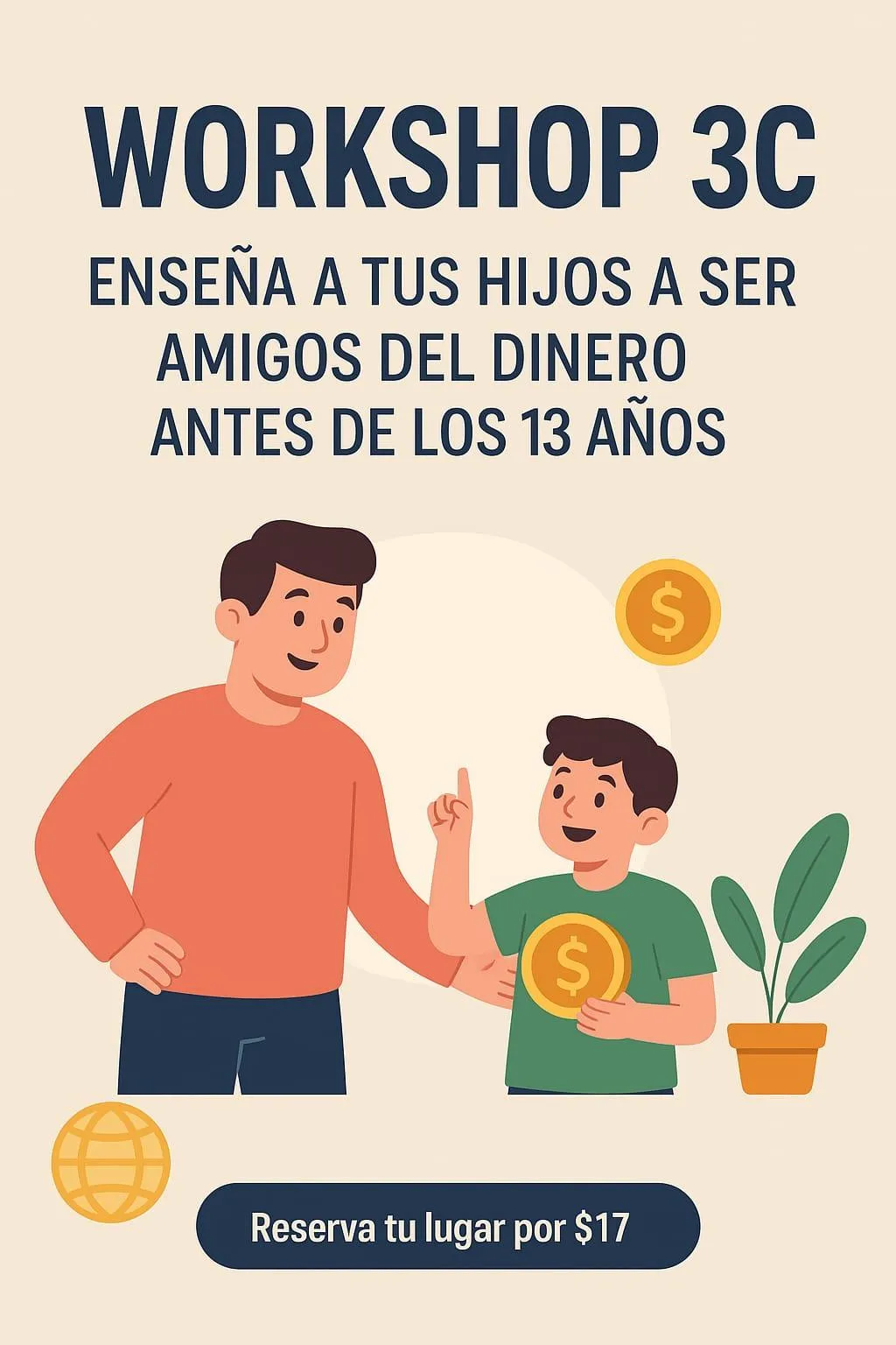 El Workshop 3C es una metodología simple y poderosa que te dará claridad y herramientas prácticas para acompañar a tus hijos en su camino financiero: